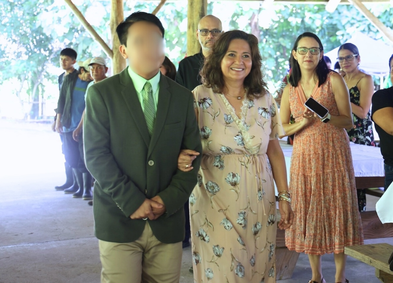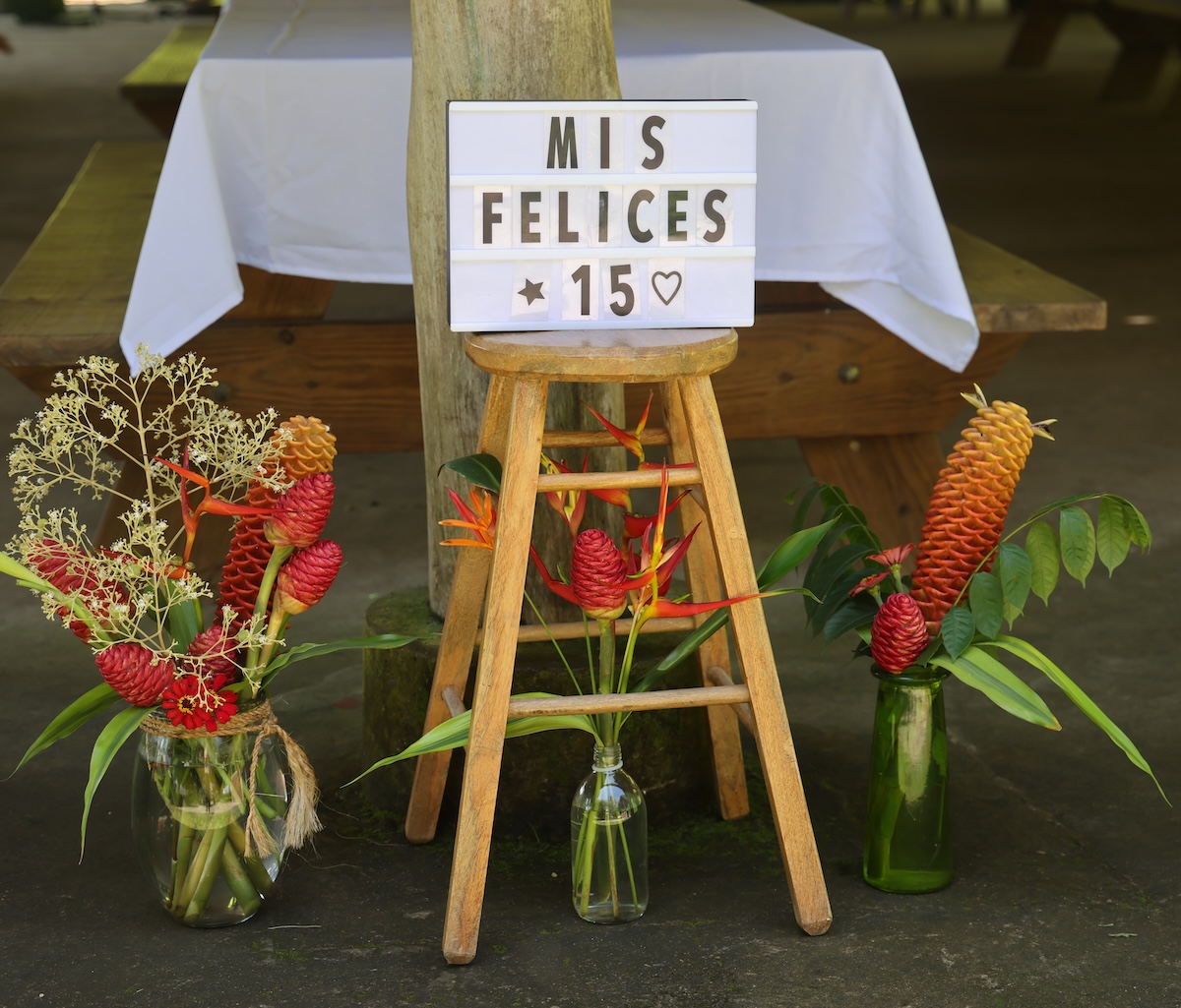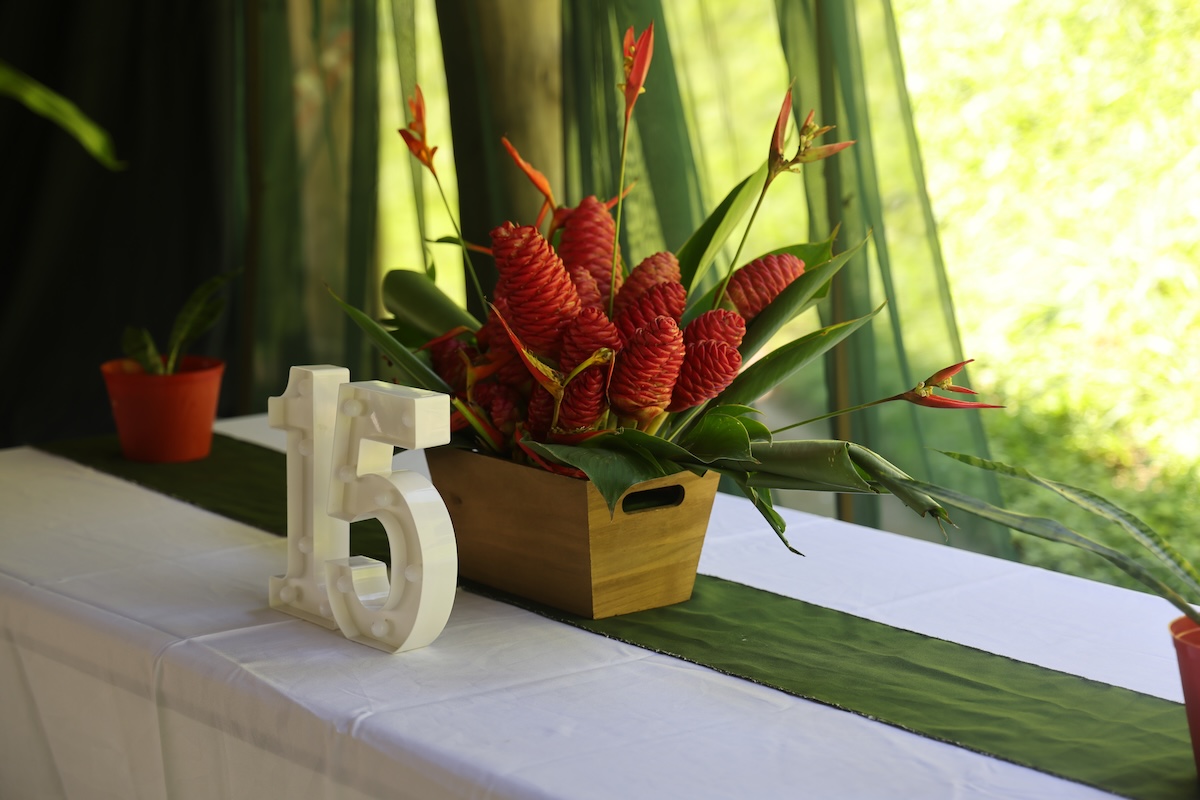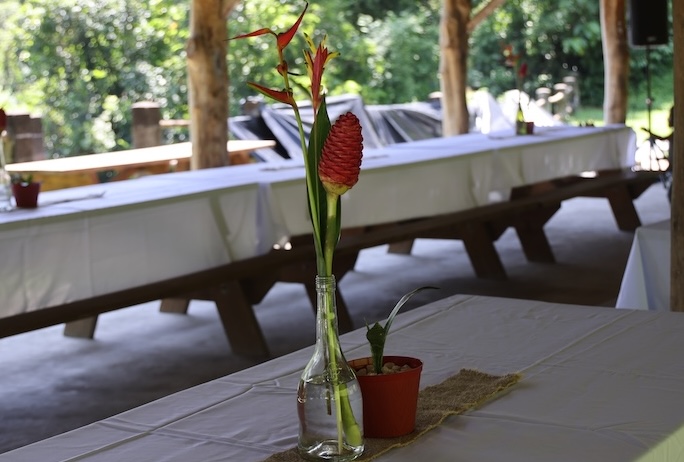 We used beautiful tropical flowers that were blooming on the farm for decorations on the tables in the pavillion area. One of our farm workers even cut flowers from his home and brought them to add, so everyone got involved in making the day special! Family members even came to join in the celebration.