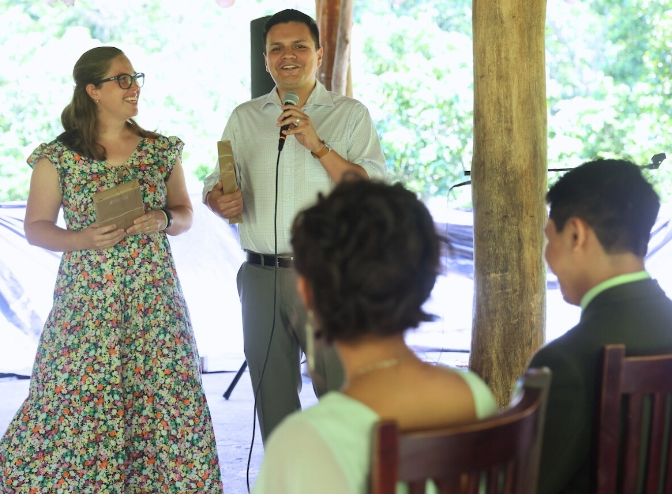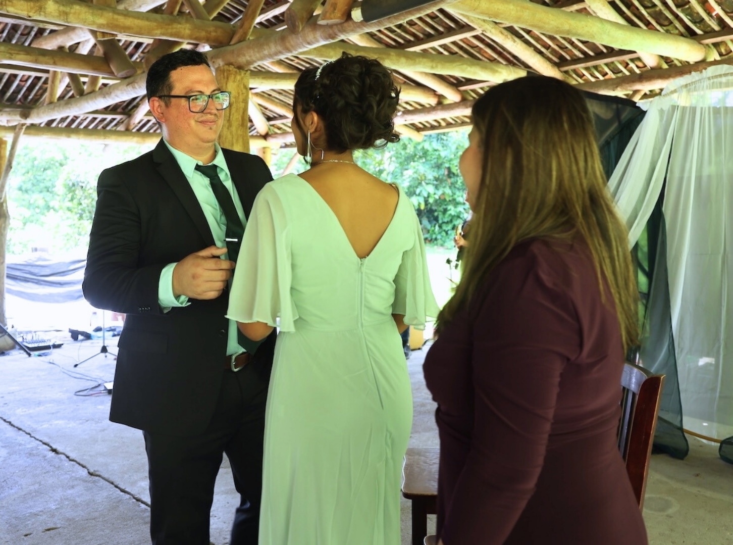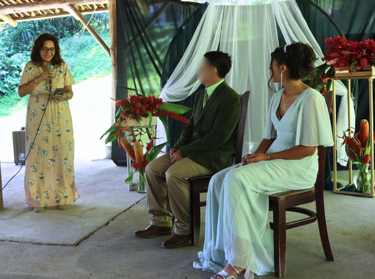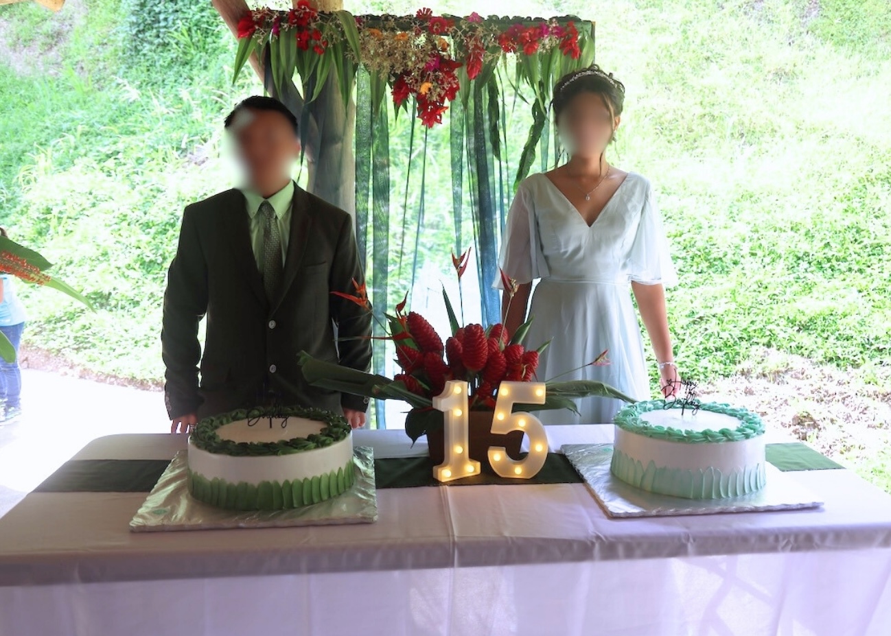 We used beautiful tropical flowers that were blooming on the farm for decorations on the tables in the pavillion area. One of our farm workers even cut flowers from his home and brought them to add, so everyone got involved in making the day special! Family members even came to join in the celebration.